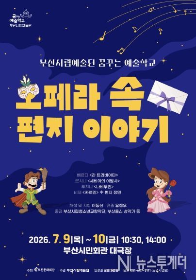 뉴스투게더 김인숙 기자 | 부산시립예술단에서는 특별기획 ‘오페라 속 편지 이야기’에 출연할 솔리스트들을 모집한다. 이번 오페라 무대를 통해 자신만의 실력과 끼를 방출할 부산지역의 청년 예술인들을 선발할 예정이다.