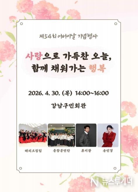 뉴스투게더 김인숙 기자 | 꿈이 모이는 도시, 미래를 그리는 강남구가 제54회 어버이날을 맞아 4월 30일 오후 2시부터 4시까지 강남구민회관에서 기념행사를 개최하고, 5월 8일에는 7개 노인복지관에서 다채로운 행사를 이어간다.
