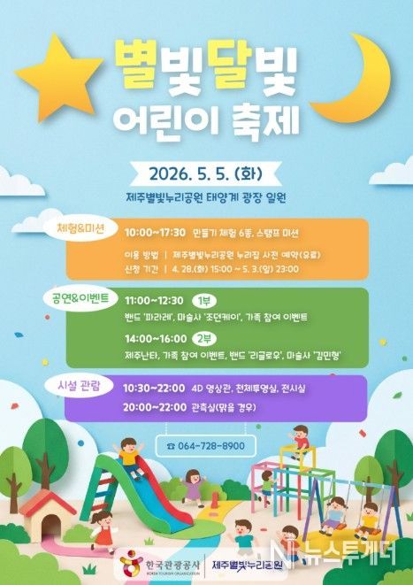 뉴스투게더 김인숙 기자 | 제주별빛누리공원은 어린이날을 맞아 5월 5일 오전 10시 공원 내 태양계 광장에서 ‘2026 별빛달빛 어린이 축제’를 개최한다.