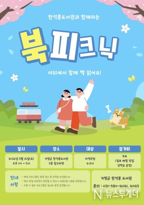 뉴스투게더 김인숙 기자 | 가평군은 5월 가정의 달을 맞아 오는 16일 한석봉도서관 3층 담소마당에서 ‘가족과 함께하는 북 피크닉’ 행사를 개최한다고 밝혔다.