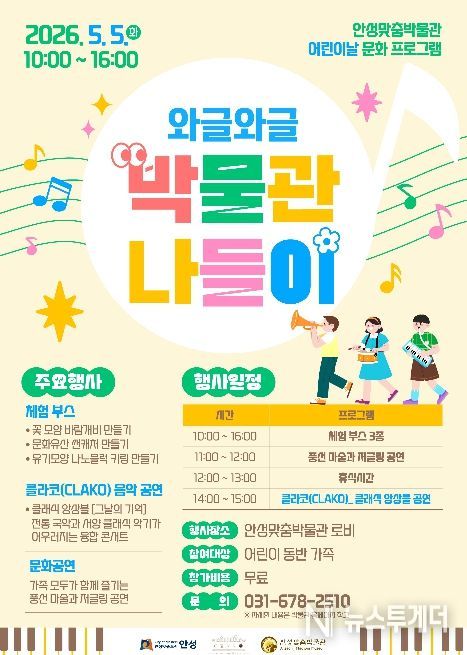 뉴스투게더 김인숙 기자 | 안성맞춤박물관은 오는 5월 5일 어린이날을 맞아, 온 가족이 함께 즐길 수 있는 문화 프로그램 ‘와글와글 박물관 나들이’를 개최한다고 밝혔다.