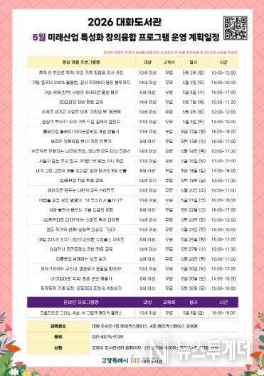 뉴스투게더 김인숙 기자 | 고양특례시 대화도서관은 가정의 달을 맞아 오는 5월 ‘미래산업 특성화 창의융합 프로그램’을 운영한다고 24일 밝혔다.