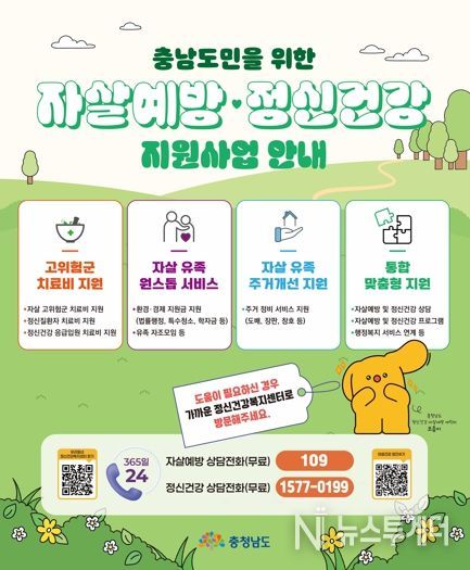 뉴스투게더 김인숙 기자 | 충남도는 자살 고위험 시기인 봄철을 맞아 자살예방 지원 사업 안내 등 선제적인 예방 활동에 나선다고 26일 밝혔다.