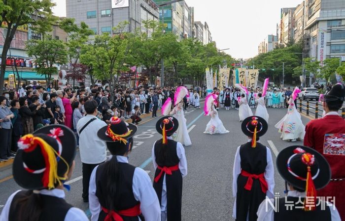 법동초등학교에서 동춘당역사공원 원형마당까지 이어진 행렬 구간에는 많은 관람객이 몰려들었고, 장엄하면서도 역동적인 연출이 더해지며 축제 분위기를 한층 고조시켰다.