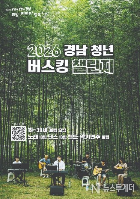 뉴스투게더 김인숙 기자 | 경상남도는 청년 버스킹 문화 활성화와 청년 문화 향유기회 확대를 위한 ‘2026 경남 청년 버스킹 챌린지’ 참가자를 5월 19일까지 모집한다고 밝혔다.