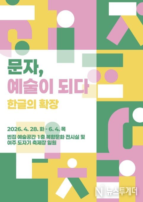 뉴스투게더 김인숙 기자 | 여주세종문화관광재단은 오는 4월 28일부터 6월 4일까지 빈집 예술공간 1층에서 기획전시 《문자, 예술이 되다 - 한글의 확장》를 개최한다고 밝혔다.