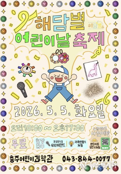 뉴스투게더 김인숙 기자 | 충주어린이과학관은 오는 5월 5일 어린이날을 맞아 연나이 8세 이하 어린이와 동반 가족을 대상으로 ‘해담별 어린이날 축제’를 무료로 개최한다고 밝혔다.