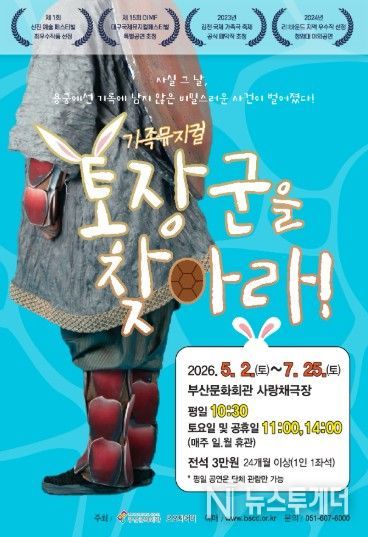 뉴스투게더 김인숙 기자 | (재)부산문화회관은 가족 뮤지컬 '토장군을 찾아라'를 오는 5월 2일부터 7월 25일까지 부산문화회관 사랑채극장에 올린다.