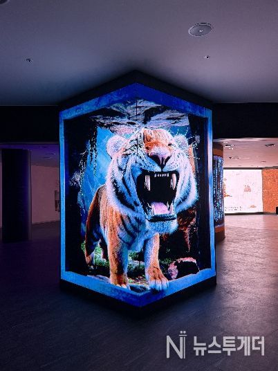 전시관 입구에 들어서면 가장 먼저 ‘일연스님의 따뜻한 환영 인사’가 관람객을 맞이하며 역사 속으로의 여행을 안내한다. 이어 거대한 LED 스크린에서는 화면 밖으로 튀어나올 듯한 ‘3D 아나모픽 곰과 호랑이’ 영상이 펼쳐진다. 삼국유사 속 건국 신화의 주인공인 곰과 호랑이가 생생한 움직임의 실감형 콘텐츠로 구현되어, 입구에서부터 관람객들에게 압도적인 시각적 경험과 몰입감을 선사한다.