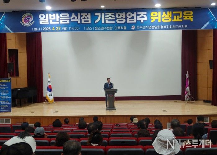 뉴스투게더 김인숙 기자 | 청도군은 27일 청소년수련관 다목적홀에서 2026년도 일반음식점 기존 영업주 위생교육을 실시했다.