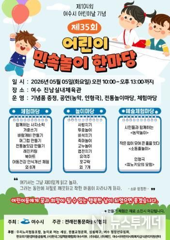 뉴스투게더 김인숙 기자 | 여수시는 제104회 어린이날을 맞아 5월 5일, 아이들이 가족과 함께 전통문화를 즐기며 마음껏 뛰놀 수 있는 민속놀이 놀이 한마당을 개최한다.
