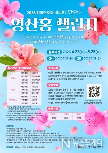 뉴스투게더 장영주 기자 | (사)강릉단오제위원회가 오는 4월 28일부터 5월 25일까지 2026 강릉단오제 영산홍챌린지를 개최한다.