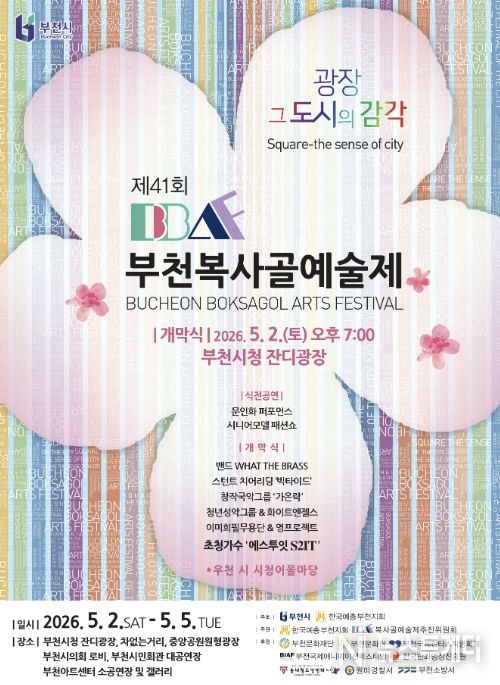 뉴스투게더 김인숙 기자 | 부천시는 ‘제41회 부천복사골예술제’를 5월 2일부터 5일까지 4일간 부천시청 잔디광장과 중앙공원, 부천아트센터 일원에서 연다.