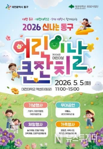 뉴스투게더 김인숙 기자 | 대전 동구는 제104회 어린이날을 맞아 오는 5월 5일 오전 11시부터 대전대학교 맥센터 실내체육관에서 ‘동구 미래의 주인공들과 함께하는 어린이날 큰잔치’를 개최한다고 28일 밝혔다.