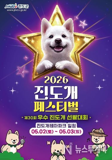 뉴스투게더 김인숙 기자 | 진도군이 오는 5월 2일부터 3일까지 이틀간 진도개테마파크에서 ‘진도개의 고향, 진도개테마파크에서의 만남’을 주제로 ‘2026 진도개 페스티벌’과 ‘제30회 우수 진도개 선발대회’을 동시에 개최한다.
