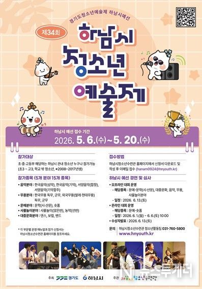 뉴스투게더 김인숙 기자 | 하남시가 주최하고 하남시청소년수련관이 주관하는 ‘2026 제34회 하남시청소년예술제’가 오는 6월 13일 하남시청소년수련관에서 개최된다.