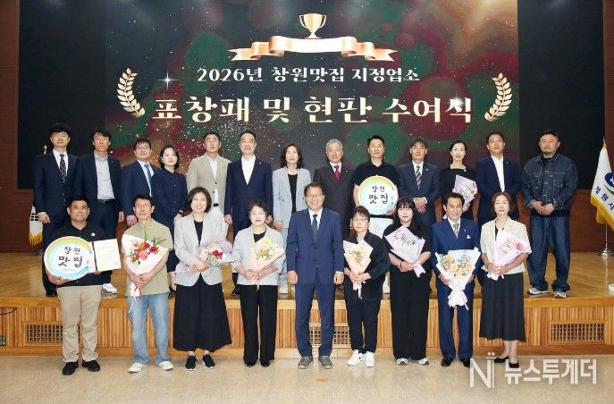 뉴스투게더 김인숙 기자 | 창원특례시는 4월 28일 창원맛집 지정을 10년 동안 유지한 업소 7개소에 대해 표창패와 특별 기념 현판을 수여하고, 2026년 신규 지정된 맛집 7개소에 지정서와 현판을 수여했다고 밝혔다.