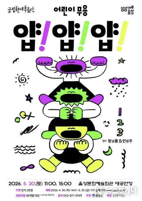 뉴스투게더 김인숙 기자 | 음성군은 어린이들을 춤의 세계로 초대하는 국립현대무용단의 어린이 무용 '얍! 얍! 얍!'을 오는 5월 30일 음성문화예술회관에서 개최한다고 밝혔다.