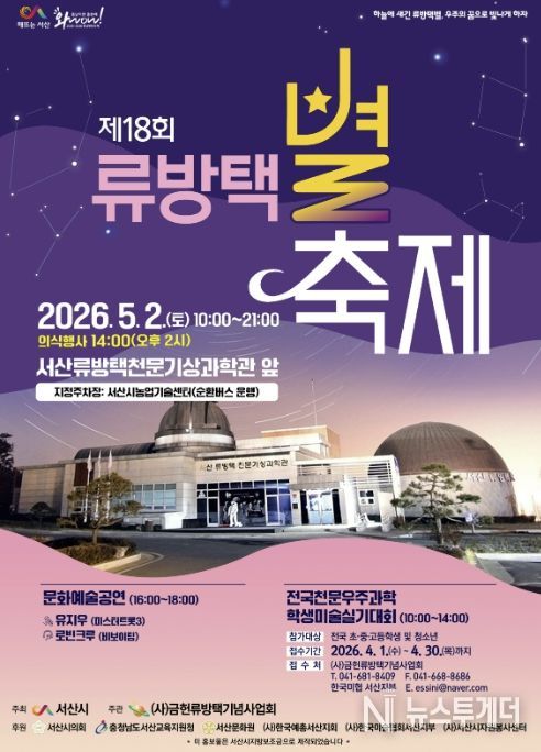 뉴스투게더 김인숙 기자 | 충남 서산시는 오는 5월 2일 류방택천문기상과학관 일원에서 제18회 류방택 별축제를 개최한다고 밝혔다.