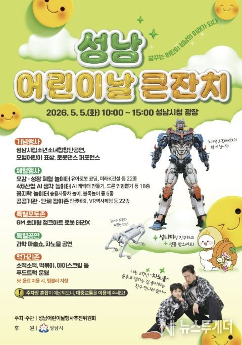 뉴스투게더 김인숙 기자 | 성남시는 오는 5월 5일 시청 광장과 1층 온누리에서 ‘어린이날 큰잔치’를 개최한다.