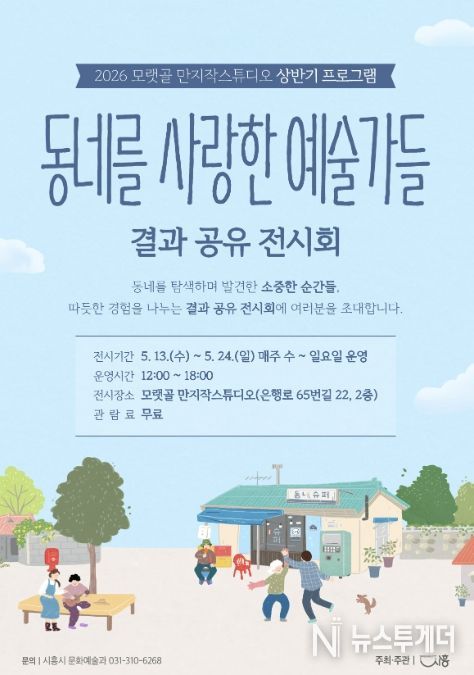 뉴스투게더 김인숙 기자 | 시흥시는 오는 5월 13일부터 24일까지 문화재생공간 모랫골 만지작스튜디오에서 2026년 상반기 프로그램 ‘동네를 사랑한 예술가들’ 결과 공유 전시를 개최한다.
