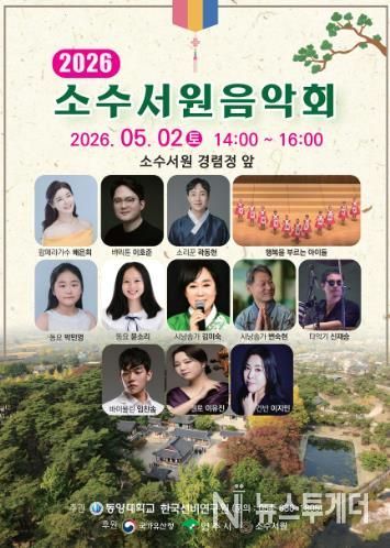 뉴스투게더 김인숙 기자 | 영주시는 오는 5월 2일 오후 2시, 유네스코 세계유산인 소수서원에서 역사와 예술이 어우러지는 ‘소수서원 음악회’를 개최한다고 밝혔다.