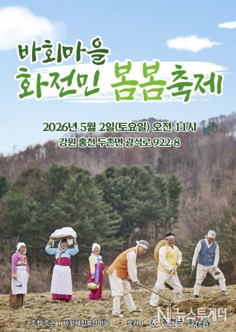 뉴스투게더 장영주 기자 | 홍천 산골 마을에서 화전민의 삶과 봄의 식문화를 한자리에서 체험할 수 있는 ‘화전민 봄봄 축제’가 열린다. 홍천군 두촌면 바회 마을은 오는 5월 2일 오전 11시부터 마을 일원에서 주민 참여형 축제를 개최한다.