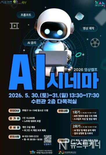 뉴스투게더 김인숙 기자 | 부평구청소년수련관은 오는 5월 30일부터 31일까지 진행하는 ‘2026 영상캠프 AI 시네마’ 참가자를 모집한다고 밝혔다.