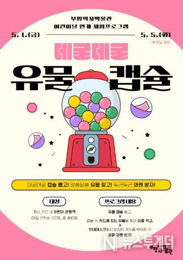 뉴스투게더 김인숙 기자 | 부평역사박물관은 어린이날을 맞아 5월 1일~5일(4일 휴관)까지 어린이와 가족 단위 관람객을 위한 체험 프로그램 ‘데굴데굴 유물 캡슐’을 운영한다.