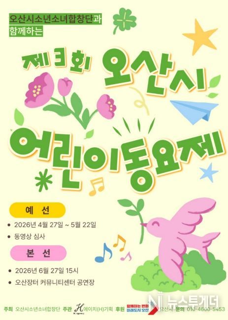 참가 대상은 오산시에 거주하는 7세 어린이부터 초등학생까지 동요를 좋아하는 아동이며, 참가비는 무료다. 예선 심사를 통해 선발된 총 15개 팀이 본선 무대에 오른다.