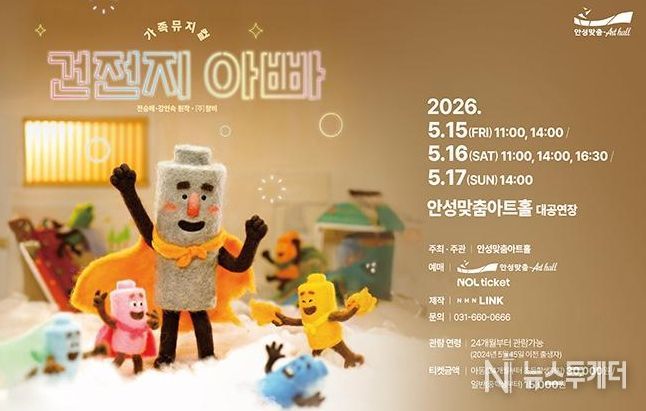 가족의 일상을 지탱하는 보이지 않는 유대와 사랑을 ‘건전지’라는 유쾌한 상상력으로 풀어낸 화제작, 가족뮤지컬 '건전지 아빠'가 5월 안성맞춤아트홀 무대에 오른다.