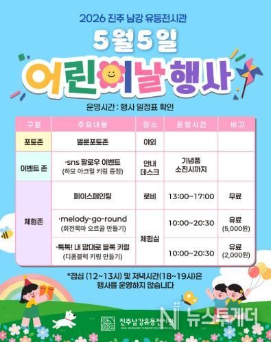 진주시 관계자는 “5월 가정의 달과 어린이날을 맞아 아이들과 가족이 함께할 수 있는 다양한 체험과 전시 프로그램을 준비했다”라며“앞으로도 지속적으로 콘텐츠를 개발해 전 세대가 함께 보고 즐기고 느낄 수 있는 복합문화공간으로 발전시켜 나가겠다”라고 밝혔다.