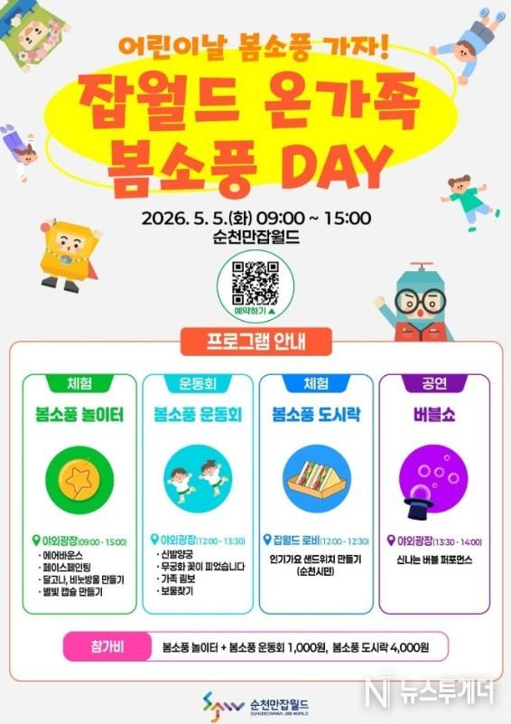 순천만잡월드 관계자는 “봄날 소풍처럼 온 가족이 함께 즐기고 어린이날의 소중한 추억을 만들 수 있도록 행사를 준비했다”며 “많은 시민들의 관심과 참여를 바란다”고 말했다.