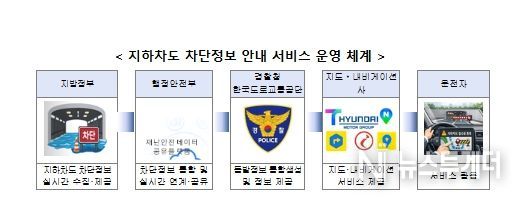 이번 서비스 제공을 위해 행정안전부와 경찰청(한국도로교통공단), 지방정부, 그리고 민간 내비게이션사가 함께 협력한다. 지하차도가 침수되면 지방정부는 현장 통제를 실시함과 동시에 행정안전부의 ‘재난안전데이터 공유플랫폼’에 통제 정보를 전송하고, 이 정보가 경찰청을 거쳐 내비게이션 앱에 실시간 반영되는 방식이다.