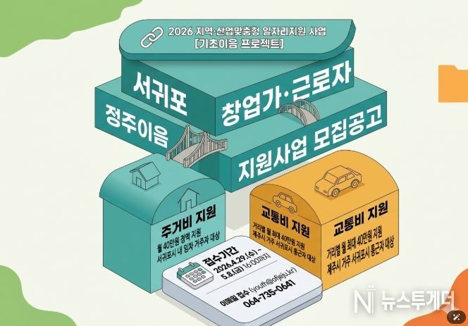 뉴스투게더 김인숙 기자 | 제주특별자치도와 제주콘텐츠진흥원(원장 강민부)은 고용노동부와 함께 서귀포시 창업 생태계 활성화와 우수 인력의 안정적인 지역 정착을 위해 '2026 서귀포 창업가·근로자 정주이음 지원사업' 참여자를 모집한다.