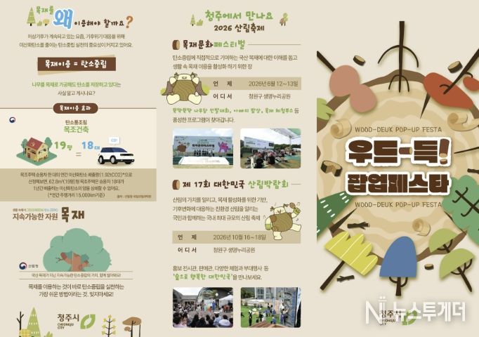 뉴스투게더 김인숙 기자 | 청주시는 오는 5월 7일부터 10일까지 청원구 생명누리공원에서 목재문화 체험행사 ‘우드-득! 팝업페스타’를 운영한다고 밝혔다.