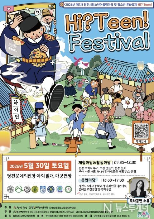 뉴스투게더 김인숙 기자 | 5월 30일 토요일, 당진문예의전당에서 2026년 제1차 당진시청소년어울림마당 및 청소년 문화축제 [Hi? Teen!]이 개최된다. 이번 행사는 ‘전통’을 중심으로 영화 ‘왕과 사는 남자’를 모티브로 기획됐으며, 현대와 조선을 넘나드는 색다른 분위기 속에서 청소년이 직접 기획·운영하는 참여형 축제로 마련됐다.