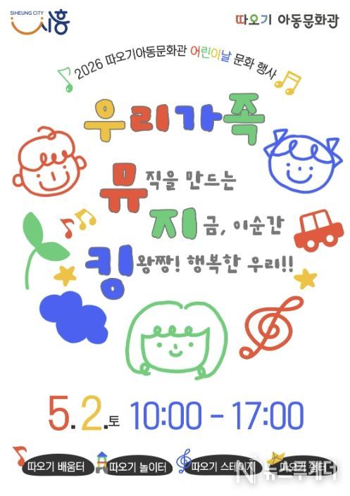 뉴스투게더 김인숙 기자 | 시흥시 따오기아동문화관은 어린이날을 맞아 오는 5월 2일 오전 10시부터 오후 5시까지 따오기아동문화관 야외 일대에서 2026년 어린이날 문화행사 ‘우리가족 뮤지킹’을 개최한다.
