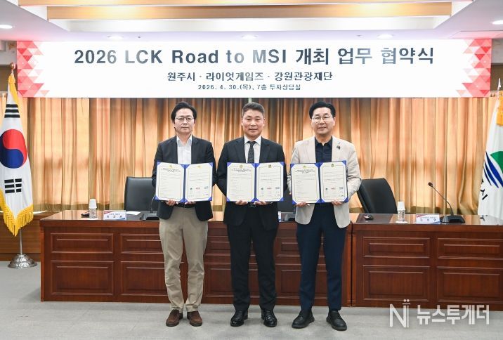 뉴스투게더 장영주 기자 | 원주시는 2026 리그 오브 레전드 챔피언스 코리아(LCK) 미드 시즌 인비테이셔널(MSI) 대표 선발전(2026 LCK Road to MSI)의 성공적인 개최를 위해 라이엇 게임즈, 강원관광재단과 손을 맞잡았다.