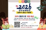 뉴스투게더 김인숙 기자 | 양주시가 운영하는 양주시 농특산물 온라인 쇼핑몰 양주농부마켓에서 다가오는 설 명절을 맞아 고객들에게 특별한 혜택을 제공하고자 설맞이 할인 이벤트를 진행한다. 이번 이벤트는 1월 26일부터 2월 10일까지 진행하고, 기간 내 양주농부마켓 로그인 시 20% 할인쿠폰 2장이 자동 지급된다. 단, 예산 소진 시 조기 종료될 수 있다. 양주시 관계자는 “설 명절을 앞두고 시민들이 부담없이 풍성한 명절을 준비할 수 있도록 이번 이벤트를 마련했다”며 “양주시에서 생산한 품질 좋은 농축산물과 가공품 등 다양한 상품과 선물세트가 준비돼 있으니 많은 관심과 구매를 부탁드린다”고 말했다.
