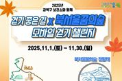 뉴스투게더 김인숙 기자 | 서울 강북구는 구민들의 일상 속 건강관리 실천을 독려하기 위해 11월 1일부터 30일까지 한 달간 ‘북서울꿈의숲 모바일 걷기 챌린지’를 운영한다. 이번 프로그램은 강북구민이면 누구나 참여할 수 있으며, 북서울꿈의숲 내 주요 산책 구간을 코스로 정해 운영된다. 코스는 서문 아트센터를 출발해 동문 방문자센터, 상상톡톡 미술관을 거쳐 다시 서문 아트센터로 되돌아오는 총 2km로, 약 40분 정도가 소요된다. 참여를 원하는 구민은 모바일 앱 ‘워크온’을 설치한 뒤, ‘강북구 걷기 좋은길 X 북서울꿈의숲 모바일 걷기 챌린지’ 참여하기 버튼을 누르면 된다. 스마트폰의 위치 정보 및 서비스와 데이터를 활성화한 상태로 코스를 완주하고, ‘응모하기’ 버튼을 눌러야 참여가 완료된다. 완주자 중 추첨을 통해 200명에게 모바일 서울사랑상품권(1만원)이 제공될 예정이다. 구는 지난해 세 차례, 올해 두 차례 걷기 챌린지를 운영하며 일상 속 걷기 문화 확산에 힘써왔다. 이번 챌린지 또한 주민들의 참여 기회를 확대하고, 건강에 대한 관심을 높이는 계기가 될 것으로 기대하고 있다. 이순희 강북구청장