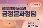 뉴스투게더 김인숙 기자 | 부산시 금정구 금정문화재단은 금정구 예술인과 함께 지역 문화예술의 현안을 공유하고 미래 발전 방향을 모색하기 위한 2025 하반기 금정문화예술포럼 '금정문화정담'을 오는 11월 26일 오후 6시 30분, 아르코공연연습센터@금정 대연습실에서 개최한다고 밝혔다. 상반기 포럼이‘동행: 금정예술가 정답게 주고받는 이야기’를 주제로 지역 문화환경의 변화 속에서 예술 생태계의 현황을 공유하고 네트워킹의 중요성을 강조했다면, 하반기 포럼은 한 해의 활동을 돌아보고 향후 재단과 예술인이 함께 만들어갈 협력과 실천의 방향을 구체화하는 자리가 될 예정이다. 특히 이번 포럼은‘금정구 거주예술인 모집’을 통해 약 100명의 지역 예술가가 참여할 예정이다. 포럼에서는 지역문화 진흥과 예술가 참여 확대를 위한 다양한 의견을 수렴하고, 예술 장르별 교류와 네트워킹을 통해 협력 기반을 강화하는 시간을 갖는다. 또한 참가 예술인에게는 소정의 참석비가 지급될 예정이다. 윤일현 금정문화재단 이사장은 “금정의 예술인들과 함께 만들어가는 포럼이 지역 문화의 밝은 내일을 여는 원동력이 되길 바라며, 예술가들의