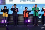 뉴스투게더 김인숙 기자 | 광주 광산구가 시민 모두가 함께 즐기고 소통하며 화합할 수 있는 다채로운 축제를 열었다. 광산구는 30일 광주여자대학교 유니버시아드 체육관에서 ‘시민의 힘으로! 함께 그리는 광산의 미래’라는 주제로 제34회 광산구민의 날 기념행사를 개최했다고 30일 밝혔다. 이날 행사는 1부와 2부로 나눠 진행했으며, △구민의 날 기념식 △동별 장기자랑 대항전 △광산마을공동체한마당 △홍보·체험·전시 공간 △다양한 먹거리 공간으로 구성됐다. 광산구는 시민 중심의 행사, 의전 간소화를 원칙으로 매년 구민의 날 행사를 시민이 주인공인 축제를 구성했다. 기념식은 분야별 시민 대표 축하 인사와 각종 재난과 수해복구 현장에서 이웃의 안전과 생명을 지켜준 자원봉사 대표들이 구민 헌장을 낭독했다. 이어 구정 발전에 이바지한 지역 인사와 시민에게 공로상과 구민상을 수여했다. 특별공로상은 유한봉 대한노인회 광산구지회장이 받았으며, 광산구민상은 △강용선 광산구지역사회보장협의체 전 민간위원장 △백영실 광산구 새마을부녀회장 △곽상민 첨단1동 주민자치회장 △기보배 광주여자대학교 교수 △홍