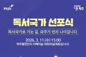 뉴스투게더 김인숙 기자 | 파주시는 오는 11일 15시, 파주출판도시 지혜의숲 대회의실에서 ‘파주시 독서국가 선포식’을 개최하고 책 읽는 도시를 넘어 ‘독서국가’로 나아가기 위한 힘찬 출발을 알린다. 이번 선포식은 지난 1월 국회의원관에서 열린 ‘독서국가 선포식 및 독서국가 추진위원회 출범식’의 취지에 발맞춰, 인공지능(AI) 시대에 대응하는 독서교육의 국가적 전환 움직임에 동참하고, 책과 도서관의 도시이자 출판산업의 중심지라는 도시의 강점을 바탕으로 시민과 함께하는 독서 생태계를 확대하기 위해 마련됐다. 이날 행사에는 도서관·교육·출판·서점 관계자와 시민 등 200여 명이 참석할 예정이며, ▲독서국가 선언문 발표 ▲대형 붓글씨 시연 ▲문단계의 아이돌이자 국회 독서국가 추진위원회 공동위원장인 박준 작가의 ‘읽는 하루’강연을 펼칠 예정이다. 파주시는 이번 선포식을 계기로 독서문화 확산 정책을 더욱 체계화해 시민 일상 속에 책 읽는 문화를 더욱 깊이 뿌리내리게 할 계획이다. 이번 행사는 시민 누구나 참여할 수 있으며, 참가 신청은 파주시도서관 누리집 또는 홍보물 내 정보 무늬(QR코드)를 이용하면 되고