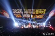 뉴스투게더 김인숙 기자 | ‘제주, 희망을 품고 달리다!’라는 주제로 새별오름 일원을 뜨겁게 달궜던 ‘2026 제주들불축제’가 14일 밤, 화려한 피날레를 장식하며 성황리에 막을 내렸다. 이번 축제는 들불축제 본연의 전통적 가치를 계승하면서도 첨단 미디어 기술을 접목해 눈길을 끌었다. 특히 ‘방문객 중심’, ‘친환경’, ‘상생’이라는 시대적 요구를 충실히 담아내며 미래지향적인 새로운 축제 모델을 성공적으로 제시했다. 축제의 하이라이트인 14일 저녁에는 ‘희망의 찬가’를 주제로 웅장한 퍼포먼스가 펼쳐졌다. 제주 전 지역 민속보존회가 하나 되어 펼친 희망기원 풍물대행진을 시작으로, 오름 전면을 캔버스 삼아 레이저와 불꽃이 결합된 융복합 미디어아트 쇼 ‘디지털 불놓기’가 밤하늘을 수놓으며 관람객들의 탄성을 자아냈다. 축제의 대미를 장식한 ‘자우림’의 피날레 콘서트 ‘희망 쏟아진다’는 관람객들에게 따뜻한 위로와 벅찬 희망을 선사했다. 낮 시간대에도 풍성한 볼거리와 즐길 거리가 이어졌다. 새봄 묘목 나눠주기를 비롯해 목장길 에코트레일런, 제주시민 노래자랑, 청소년 댄스 경연대회가 열려 시민과 관광객이 함께