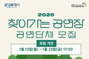 뉴스투게더 김인숙 기자 | (재)화성시문화관광재단은 1월 12일부터 1월 23일까지 ‘2026 찾아가는공연장’ 참여 공연단체를 모집한다고 밝혔다. ‘찾아가는 공연장’은 화성시의 곳곳에서 다양한 장르의 공연을 제공함으로써 시민들의 일상적인 문화예술 관람을 돕기 위한 사업으로, 2009년부터 시작된 화성시문화관광재단의 대표 문화사업 중 하나다. 지난 2025년도에는 공개 모집을 통해 40개의 공연단체를 선정했으며, 문화취약계층에 방문공연, 공원 광장 거리공연 등을 통해 다양한 장르의 공연으로 화성시민과 함께했다. ‘2026 찾아가는 공연장’은 약 140회차의 공연을 목표로 운영된다. 이번 공연단체 모집은 3년 이상의 공연활동 경력이 있는 공연단체라면 지역, 장르에 상관없이 신청가능하다. 접수는 1월 12일부터 23일까지 온라인으로만 가능하며, 1차 서류‧영상 심사, 2월 9일~10일 2차 실연‧면담 심사를 거쳐 2월 12일에 최종 선정단체 총 35팀을 발표할 예정이다. 화성시문화관광재단 안필연 대표이사는 “지역과 장르의 제한을 두지 않는 만큼, 화성시 곳곳에서 재능을 뽐내줄 다양한 예술 공연단체들의 많은 관심과 지