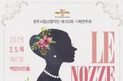 뉴스투게더 장영주 기자 | 원주시립교향악단은 오는 2월 5일 오후 7시 30분 백운아트홀에서 제103회 기획연주회 ‘피가로의 결혼’을 개최한다. 시립교향악단은 정주영 상임지휘자의 지휘 아래, 바리톤 김영광, 소프라노 전큰별, 베이스 강동윤 등 한국예술종합학교 성악 및 예술사 전공 학생들과 협연해 오페라 ‘피가로의 결혼’을 선보인다. 피가로의 결혼은 모차르트 3대 오페라 중 하나이며, 총 4막으로 구성돼 있다. 스페인 남부 안달루시아 지방의 수도 세비야를 배경으로 계급사회에서 시민사회로 전환되는 18세기 유럽 사회의 변화를 그린 작품이다. 연주회는 전석 무료로 진행되며, 사전 예매는 원주시 통합예약플랫폼에서 접수한다.