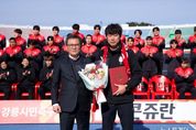 뉴스투게더 장영주 기자 | FC강릉(재단법인 강릉시민축구단)은 2026시즌을 앞두고 직무대행 체제였던 감독직위에 임다한 감독을 임명하여, 새 시즌을 향한 팀 운영 체제를 완성했다. 구단은 2026년 1월 30일, 임다한 감독 임명식을 개최했다. 이날 FC강릉 이사장인 김홍규 강릉시장이 직접 임명장을 수여하며, 감독 직무대행 체제로 운영되던 팀이 정식 감독 체제로 전환했음을 대외적으로 분명히 했다. 임다한 감독의 선임을 계기로 FC강릉은 2026시즌을 향한 지휘 체계를 명확히 정립하고, 전지훈련을 포함한 시즌 준비에 속도감 있게 돌입할 계획이다. 임명식 직후에는 2026시즌을 대비해 구성이 완료된 선수단(40명: 코치8, 선수단32)의 첫 공식 행사로 단체사진 촬영이 이어졌다. 이번 행사는 완성된 선수단의 현재 모습을 대중에게 처음 선보이는 자리로, 2026시즌 FC강릉의 출발을 상징하는 장면이 될 전망이다. 또한 김홍규 이사장은 전지훈련을 앞둔 선수단에게 격려와 응원의 메시지를 전하며 선전을 당부했고, 선수단 역시 새 시즌을 향한 각오와 결의를 다지는 시간을 가졌다. FC강릉 최윤순 단