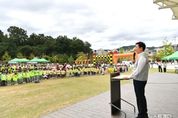 뉴스투게더 장영주 기자 | 원주시가 주최하고 원주시 어린이집연합회가 주관한 ‘2025년 원주시 어린이집 영유아 한마음대회’가 지난 16일 중앙근린공원 및 원주문화원에서 열렸다. 올해로 18회째를 맞은 이번 대회는 ‘숲에서 함께 놀아요!’를 주제로 진행됐으며, 관내 어린이집 원아와 보육교사 등 총 1,900여 명이 참여했다. 이번 행사는 아이들의 안전을 위해 1부와 2부로 나눠 진행됐으며, 기념식, 둘레길 걷기, 블록 체험, 버블 공연 등 영유아들이 즐겁게 체험할 수 있는 다양한 프로그램이 마련됐다. 이날 원아들은 중앙공원 둘레길을 선생님, 친구들과 함께 걷고, 야외에서 즐겁게 뛰놀며 파란 가을 하늘과 자연을 만끽하는 행복한 하루를 보냈다. 원강수 원주시장은 “어린이집 영유아들이 마음껏 뛰놀며 즐거운 시간을 보냈길 바란다”라며, “원주시를 아이들과 부모들이 행복한 ‘아이 키우기 좋은 도시’로 만들기 위해 최선을 다하겠다”라고 말했다.