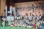 뉴스투게더 장영주 기자 | 강릉농악보존회가 9월 28일 충북 영동군에서 열린 ‘제66회 한국민속예술제’ 청소년부 경연대회에서 강원특별자치도 대표로 출전하여 대상인 대통령상 수상의 영예를 안았다. 이번 경연에는 강릉시 관내 초중고교 학생 44명(초 34명, 중 9명, 고 2명)이 출연했으며, 경연장에 학부모 응원단 및 보존회 회원의 뜨거운 응원으로 예술제에 열기를 더했다. 학생들은 지난 7월부터 약 두 달여 간 무더위와 가뭄이라는 강릉의 어려운 상황 속에서도 굵은 땀방울을 흘리며 꾸준히 연습하며 경연을 준비했고, 그 결과 1위를 차지하여 대통령상 수상이라는 값진 성과를 거두었다. 이날 경연에서는 강릉농악의 대표적인 “농사풀이농악”을 선보였다. 이 농악은 과거 농사과정을 몸짓, 손짓으로 표현한 것이 가장 큰 특징으로 소, 볏짚 등 농사 과정의 다양한 소재들을 직접 몸으로 표현하여 하나의 연극이나 마임을 보는듯한 재미를 느낄 수 있다. 이번 경연은 임영민속연구회의 김남일 박사가 총 연출을 맡고, 이용신 전 서울노원구립예술단장이 고증을 담당해 완성도를 높였다. 한편, 올해 한국민속예술제는 문화체육관광부와